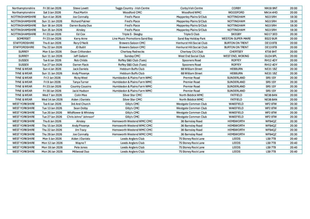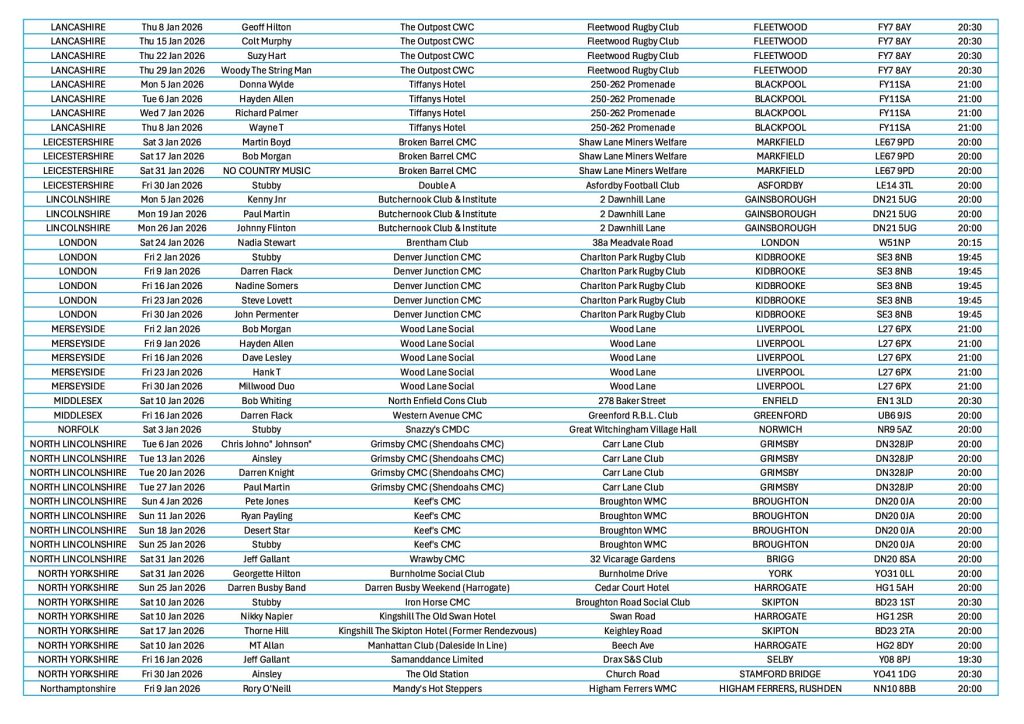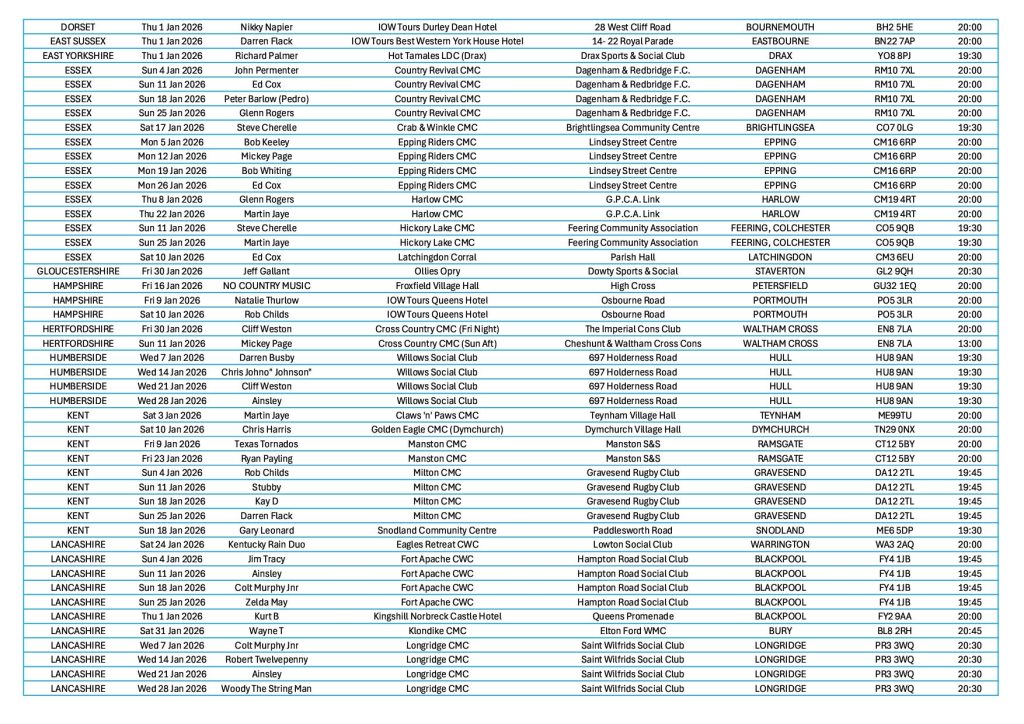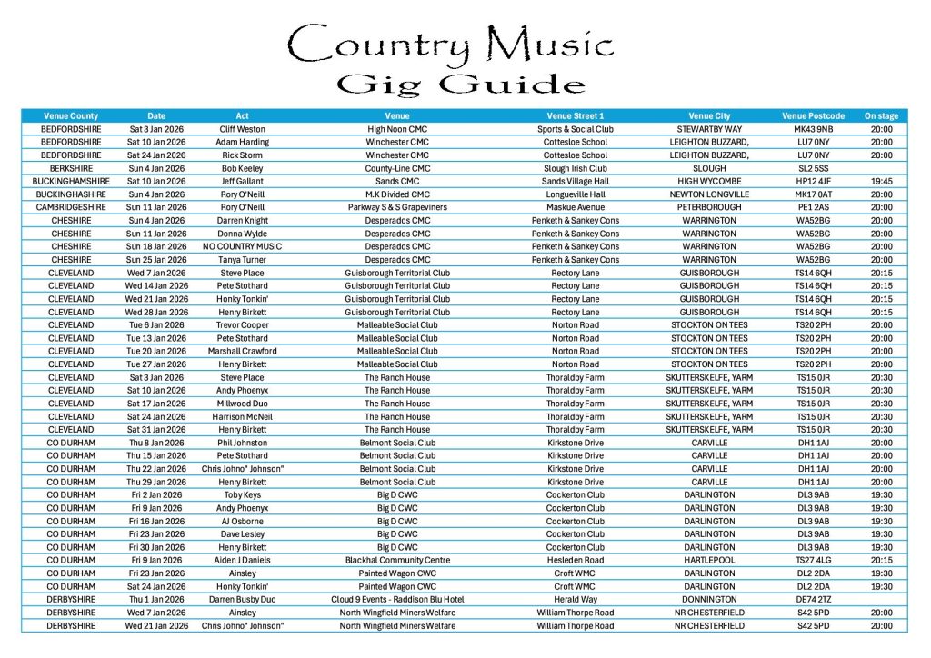 Get the free Country Music Gig Guide emailed directly to your inbox
